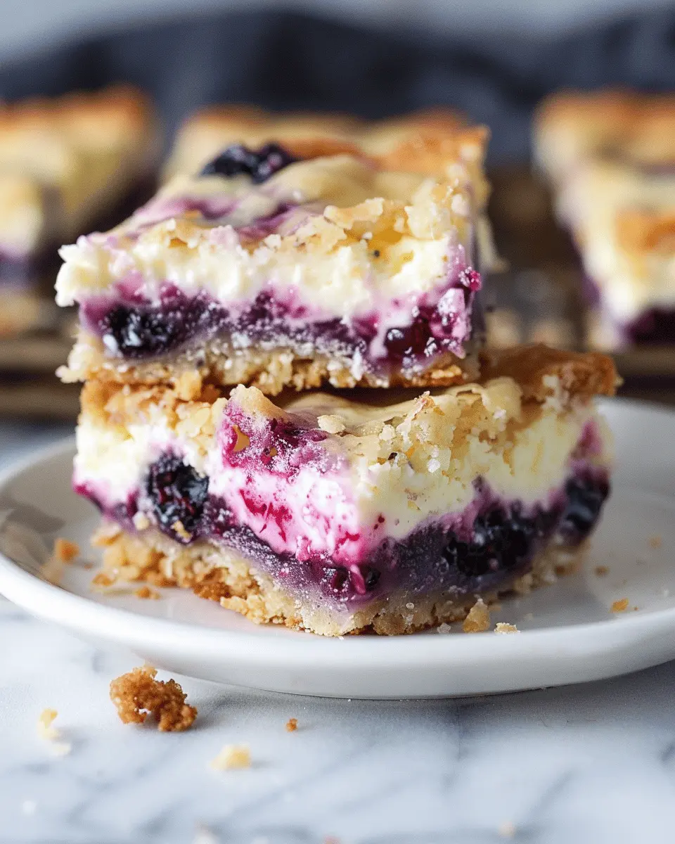 These Blueberry Cream Cheese Bars are a delightful treat that combines the creamy texture of cream cheese with the sweet-tart flavor of blueberries, perfect for any occasion.