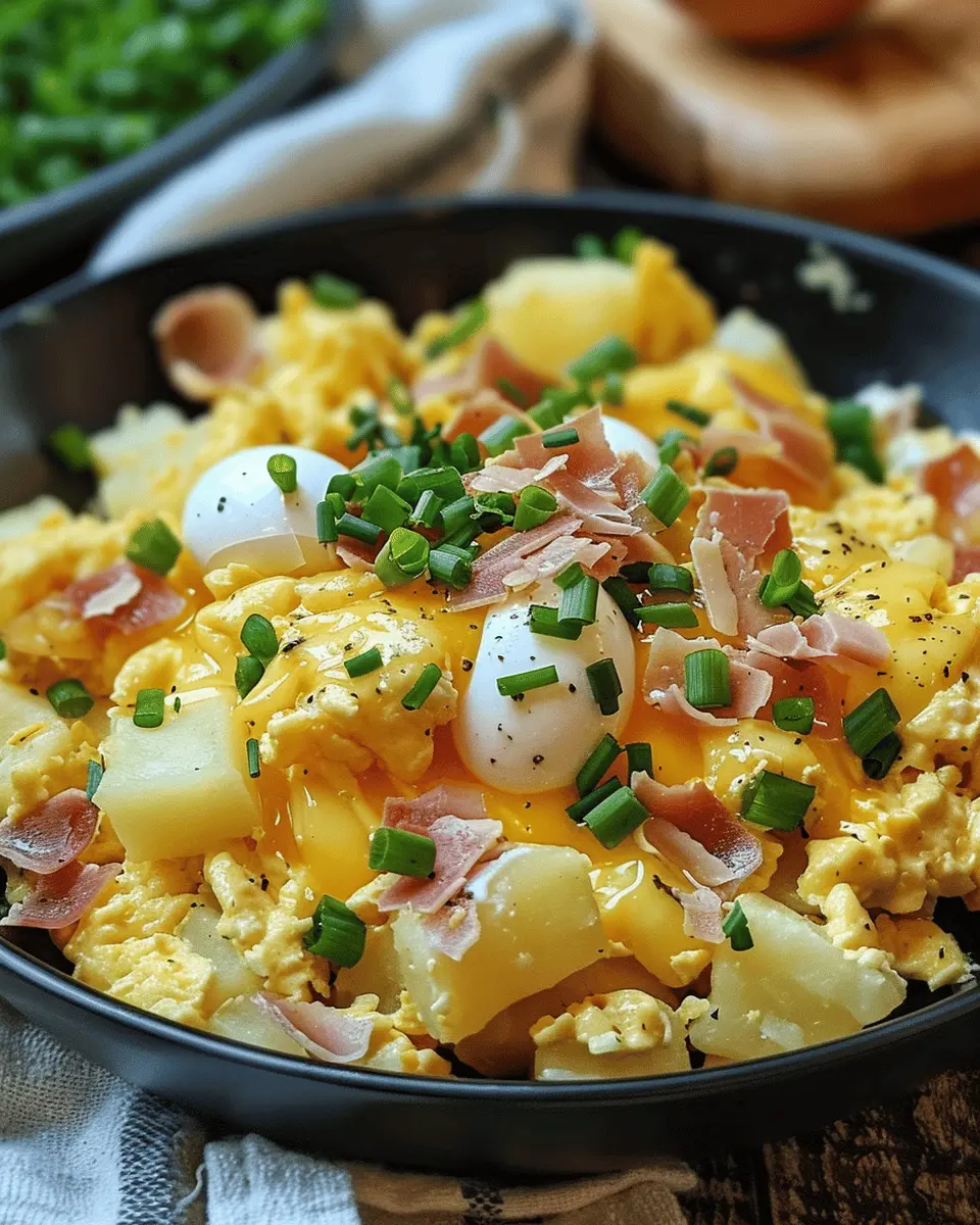In summary, the cheesy potato egg scramble is more than just a breakfast dish; it’s a hearty and versatile meal that can be enjoyed any time of day. With the comforting mix of fluffy eggs, savory potatoes, and melty cheese, it’s a dish that brings a sense of home and joy to the table. Experiment with different add-ins like turkey bacon or chicken ham for a personalized touch or go meatless with your favorite veggies. For a quick, nutritious meal that’s both satisfying and delicious, this recipe is sure to become a breakfast staple in your kitchen. Enjoy every bite!