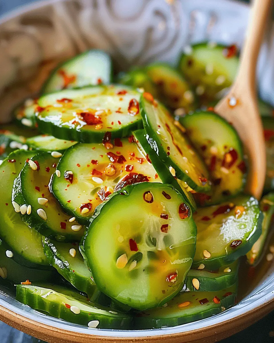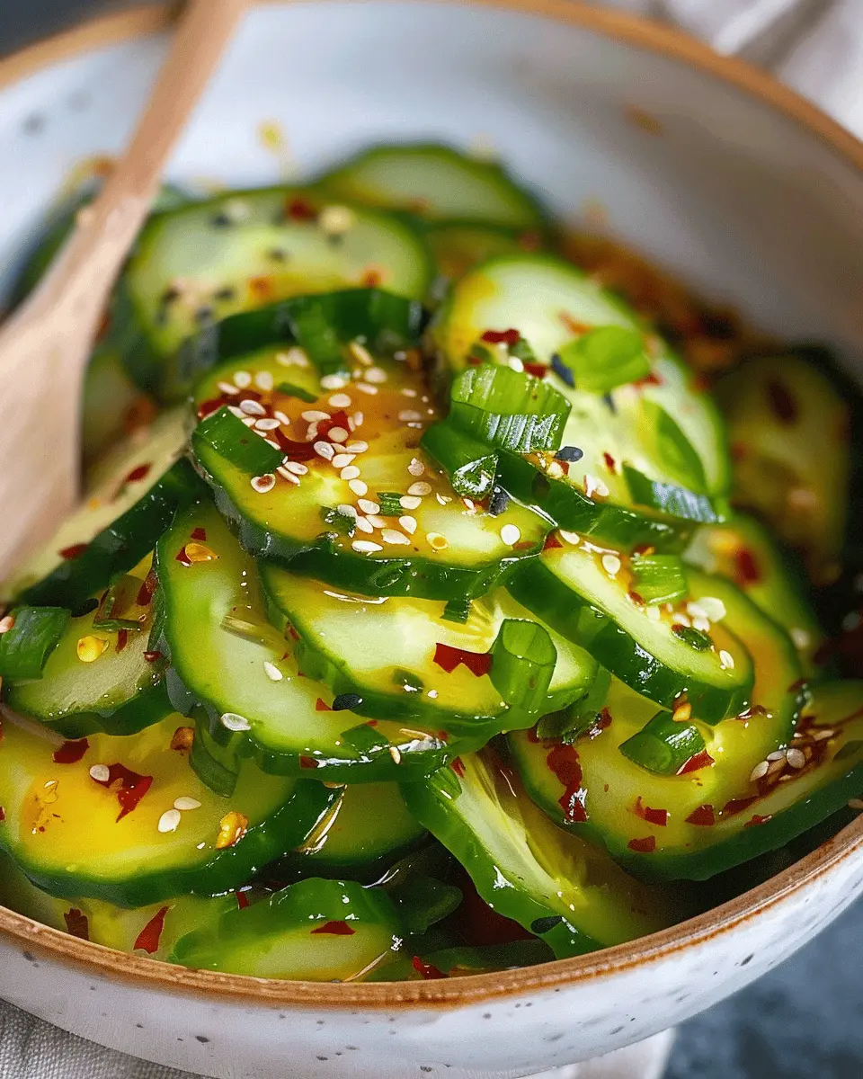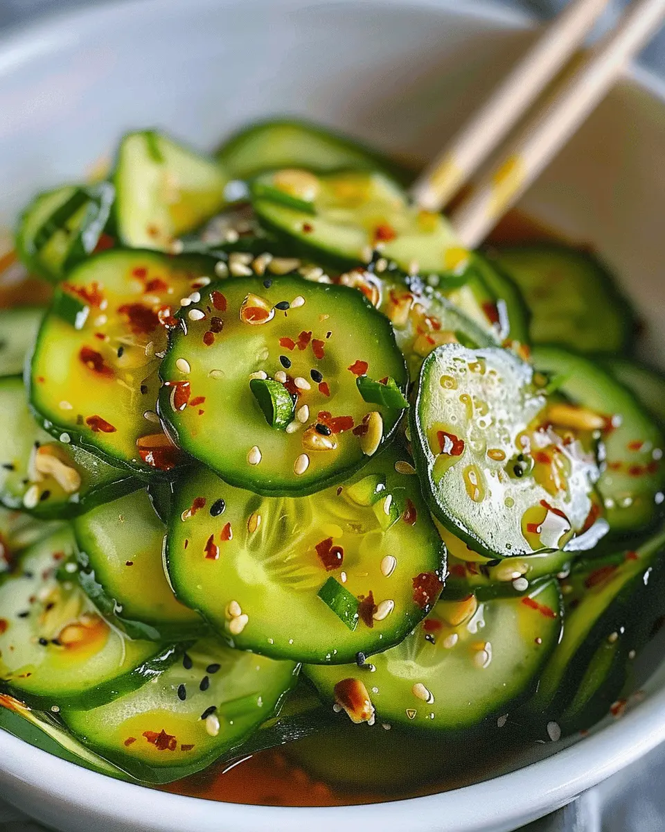 A light and refreshing Asian cucumber salad that combines crisp cucumbers with zesty flavors.