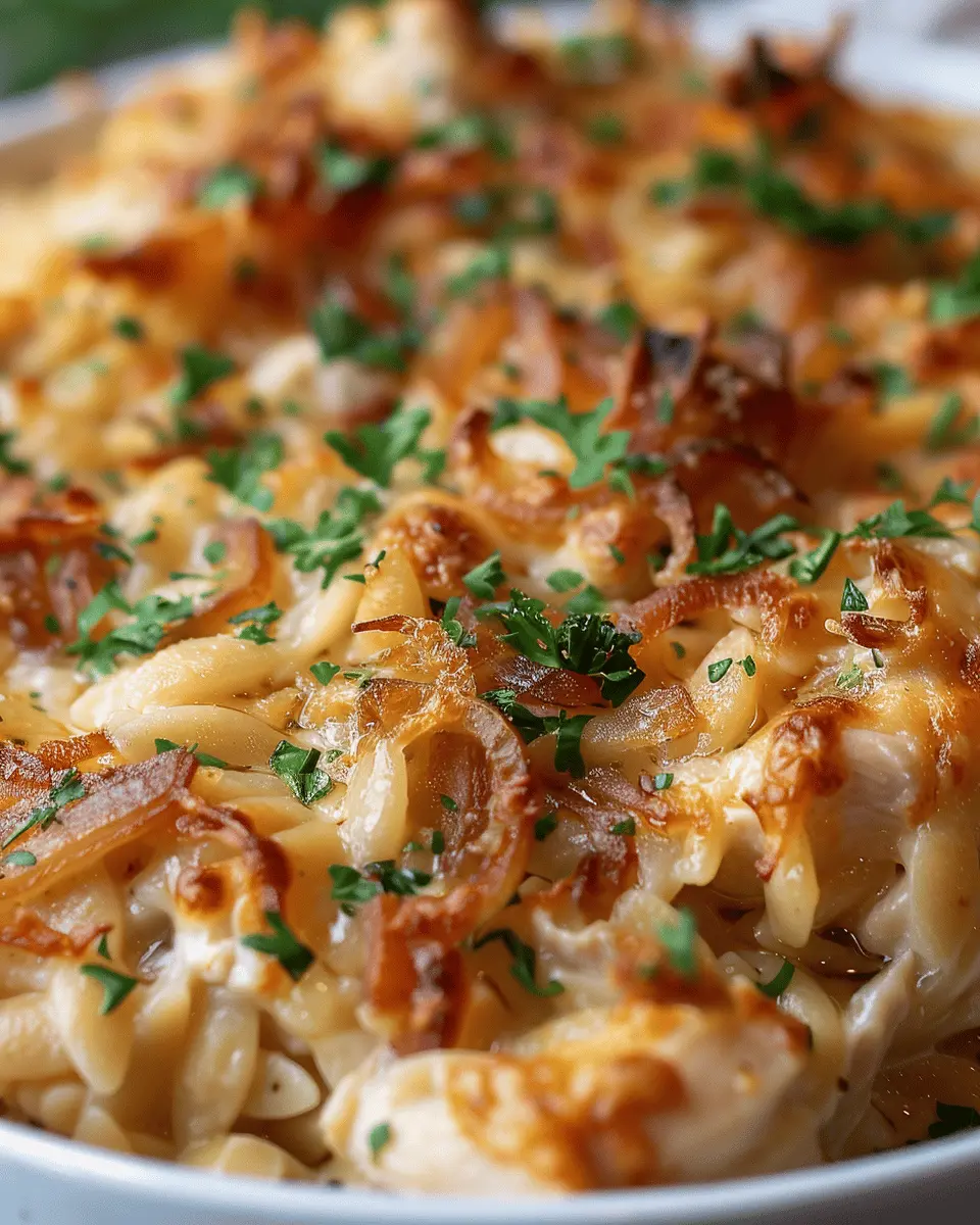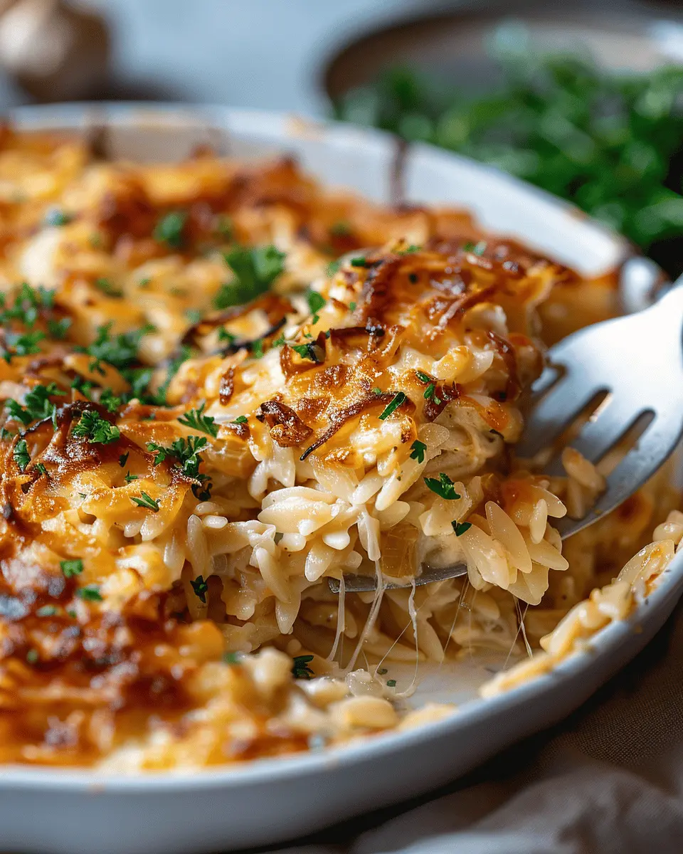 Whether you’re hosting friends or looking to treat yourself on a cozy night in, the French Onion Chicken Orzo Casserole is bound to impress. Plus, feel free to get creative—consider adding seasonal vegetables or different proteins based on what you have on hand.