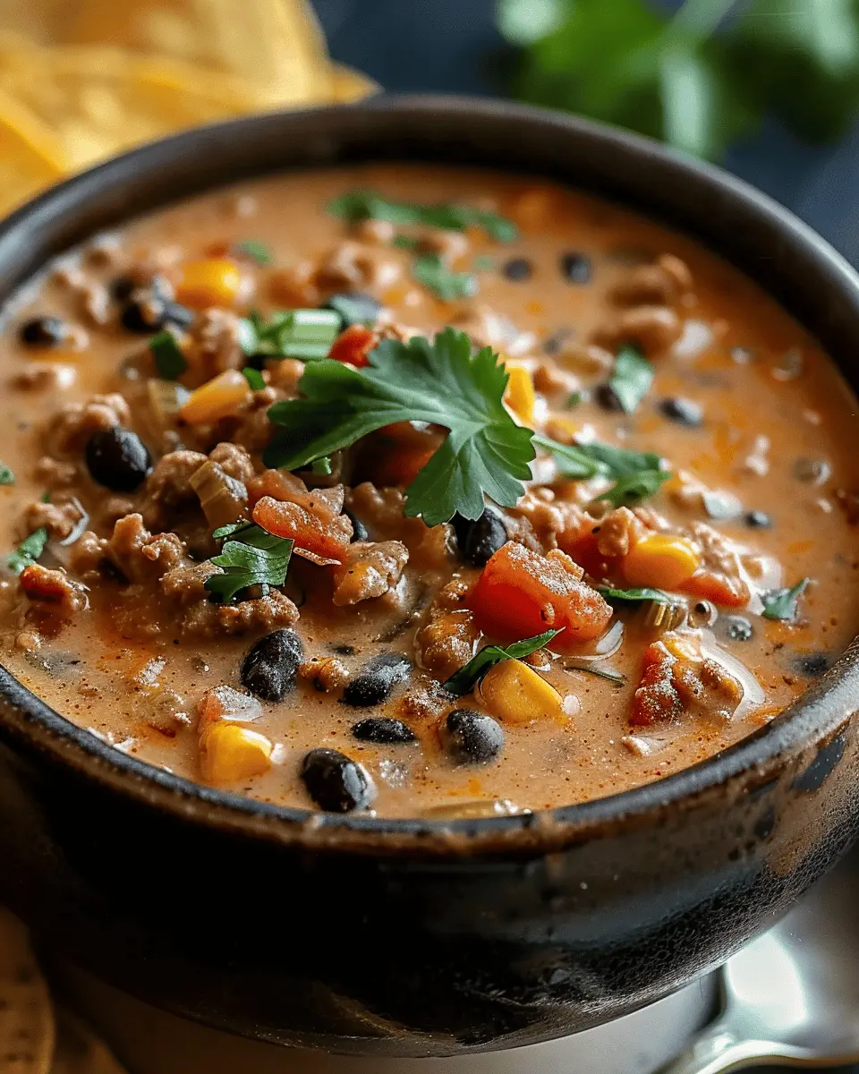 Before you know it, you’ll have a pot of creamy, satisfying taco goodness. Serve it hot, garnished with avocado, cilantro, or tortilla strips for that perfect finishing touch!