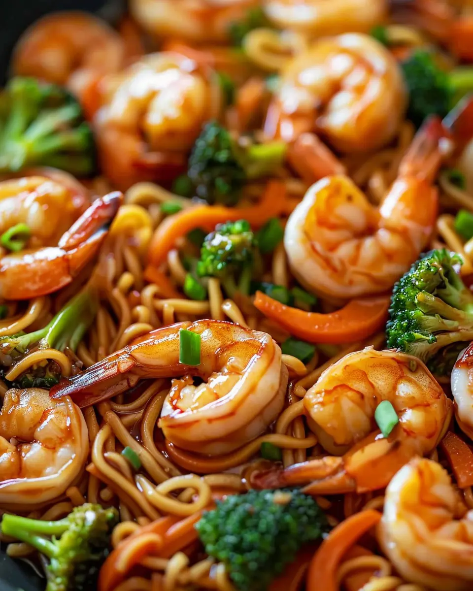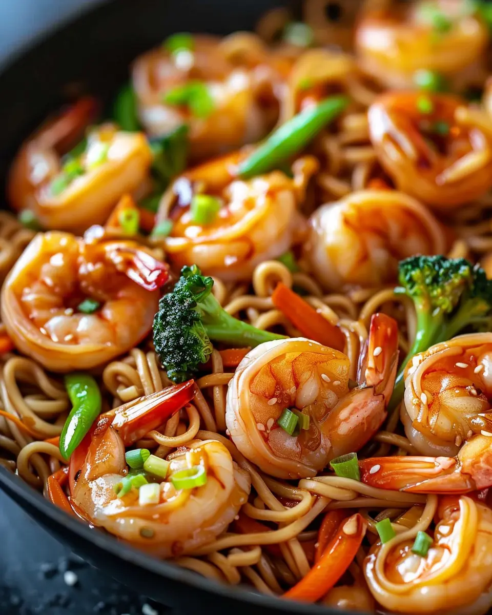 - Creative Plating: Serve the stir fry layered with noodles on one side and shrimp and veggies neatly arranged on the other.