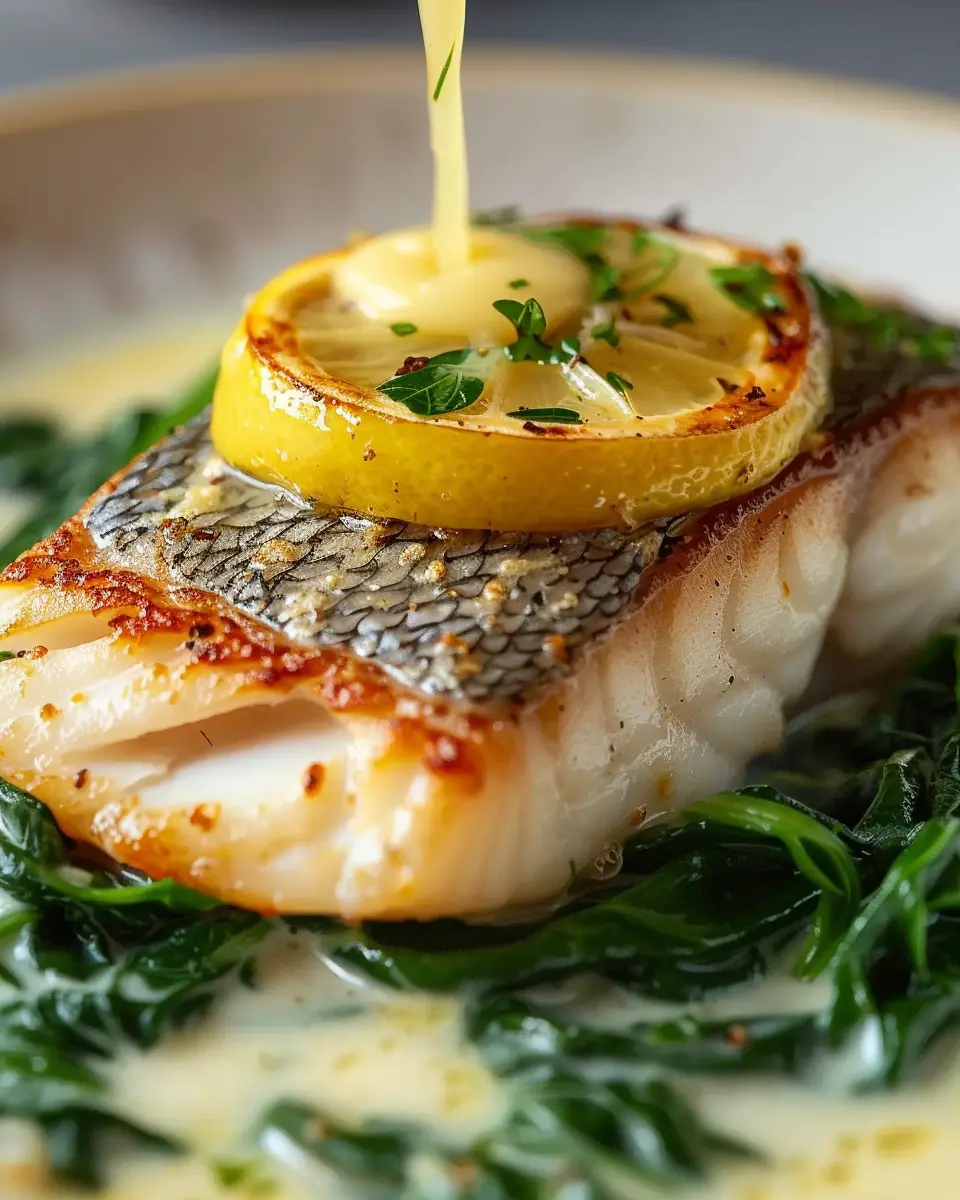 Enjoy a delightful Lemon-Garlic Sea Bass paired with rich Creamed Spinach, a perfect combination for seafood lovers.