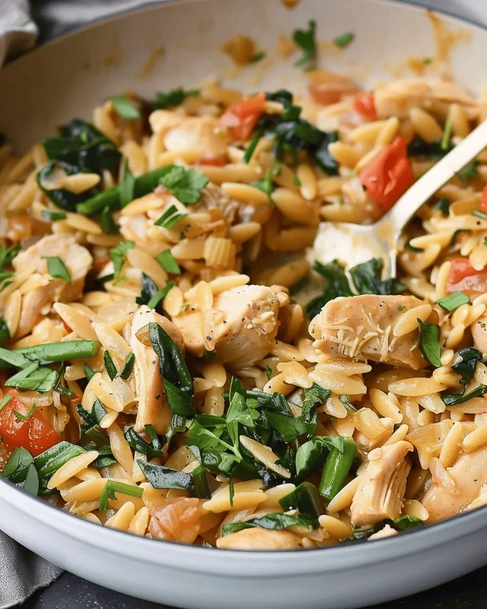 A delicious and easy one pot chicken orzo recipe perfect for family dinners.