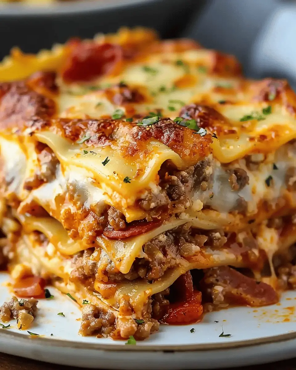PrintParmesan Garlic Turkey Bacon Cheeseburger Lasagna Recipe You’ll Love