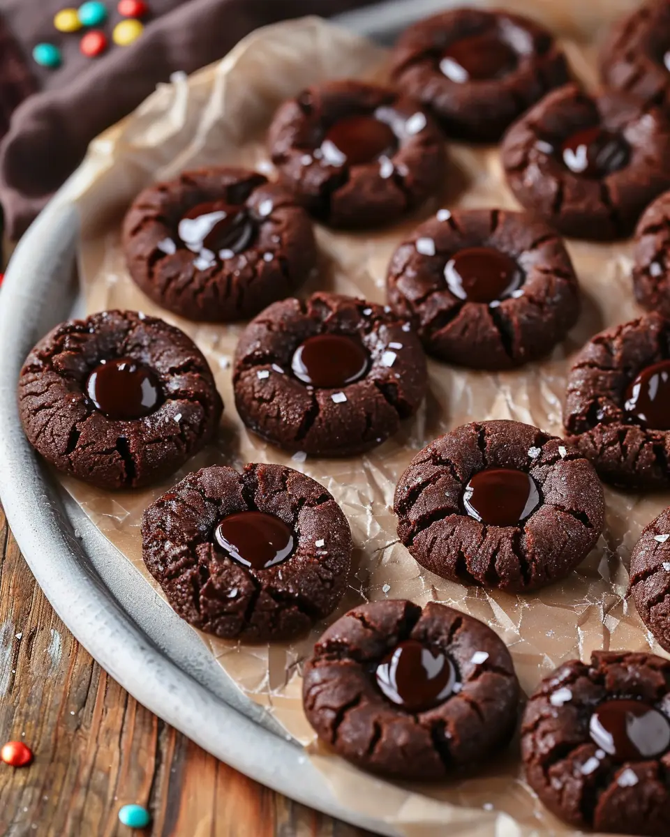 You’ve just created rich chocolate thumbprint cookies that are sure to be a hit—whether for a cozy night in or as special gifts. Happy baking!