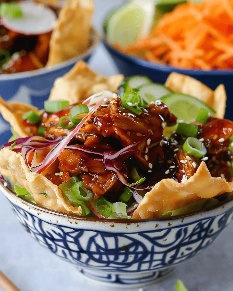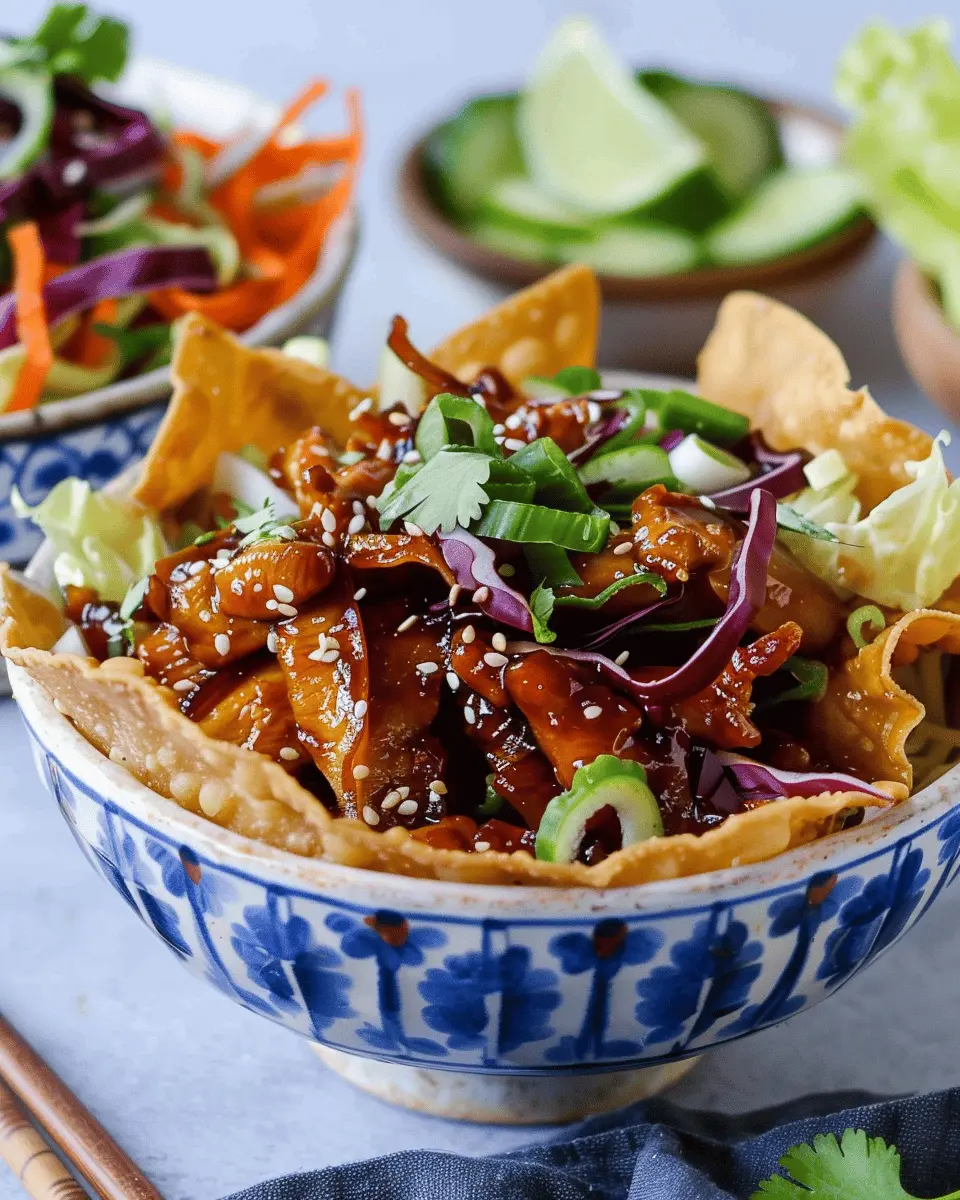 What makes these taco bowls so special? They beautifully blend the rich flavors of teriyaki sauce with the crunchiness of wonton wrappers, creating a delightful texture and taste experience. This dish is perfect for a weeknight dinner or even for impressing your friends during a get-together. Imagine serving up a bowl loaded with succulent chicken, fresh veggies, and a drizzle of your favorite sauce. It’s comfort food that’s anything but ordinary!
