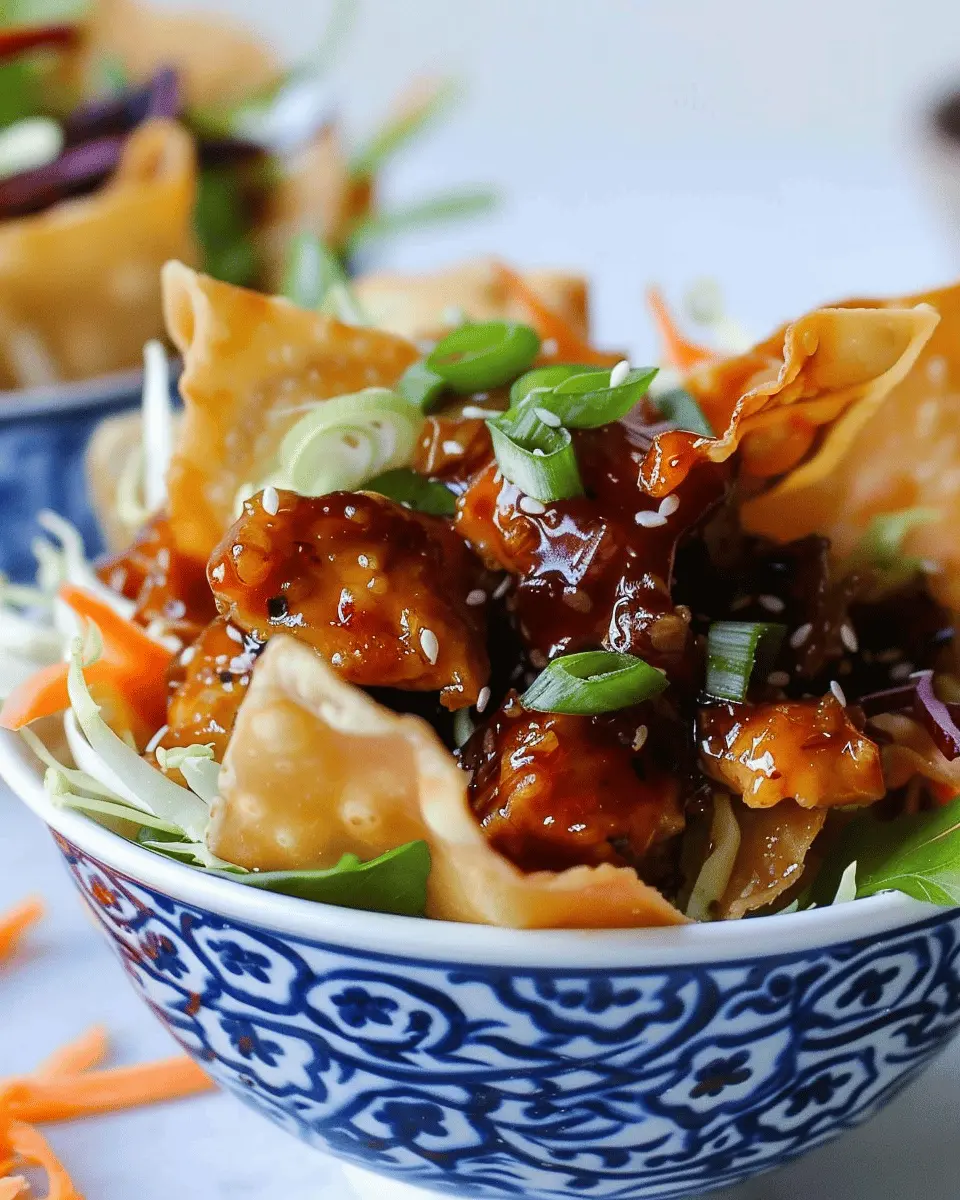 When it comes to showcasing your teriyaki chicken wonton taco bowls, presentation is key! Use vibrant, colorful bowls that contrast nicely with the rich hues of the teriyaki sauce and fresh veggies. You might consider serving them in clear glass bowls to highlight all those eye-catching ingredients. Garnish your creations with chopped green onions, sesame seeds, or even a sprinkle of chili flakes for an added pop of flavor and color. If you’re feeling adventurous, try layering your ingredients in a mason jar for a fun, portable twist!