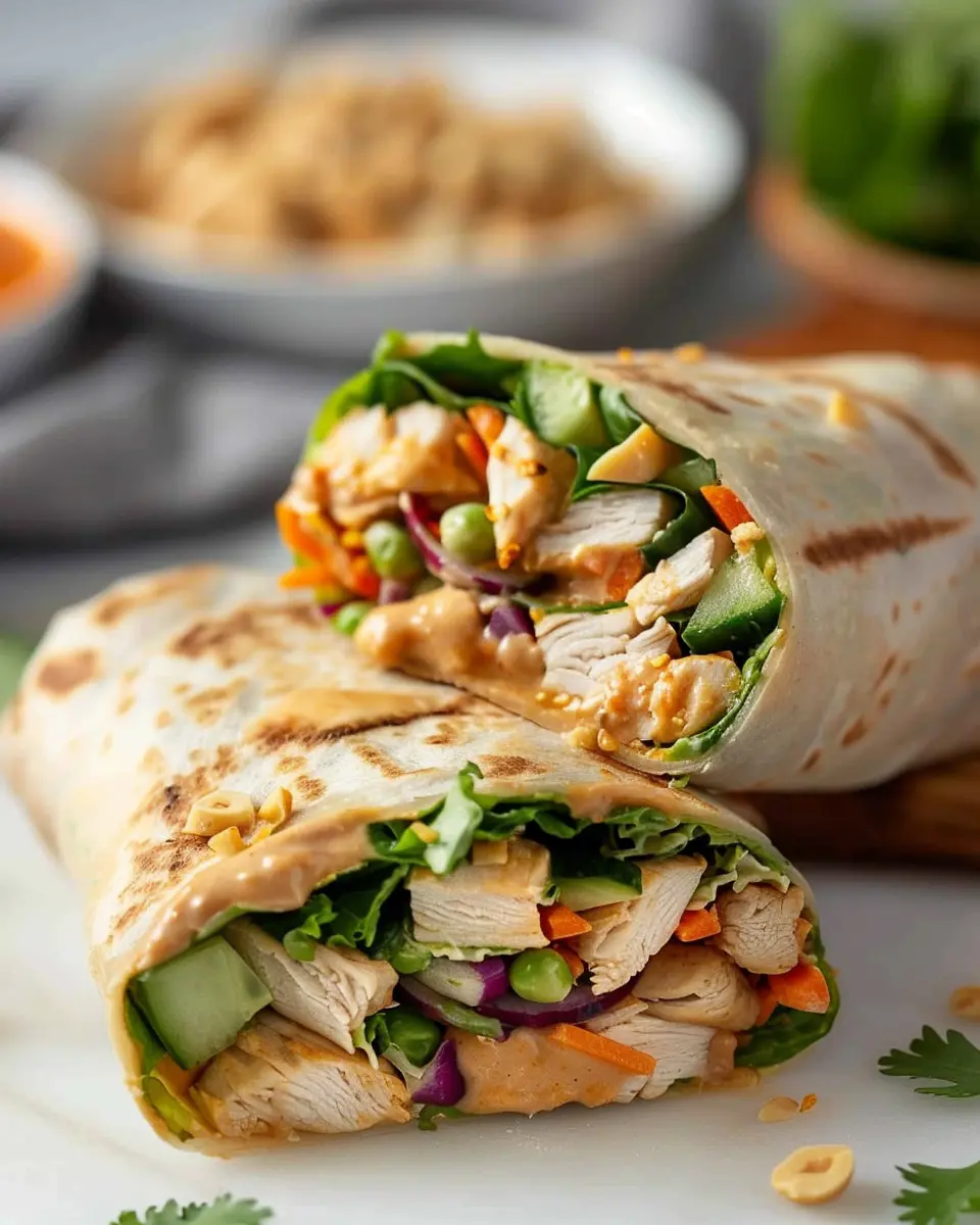 Delight in the flavors of Thai cuisine with these easy-to-make peanut chicken wraps. Perfect for a quick dinner!